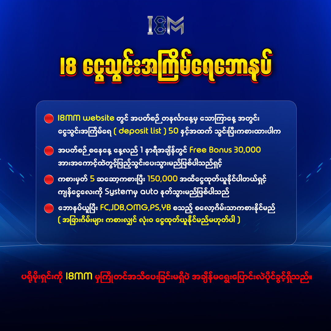 4. Once per person, per account, address, email, phone number, bank account, bank account name, IP used in the registration if verified and have duplicate information, or in case of abuse or multi-accounting, I8MM.com has the right to cancel the promotion balance without notice to know in advance